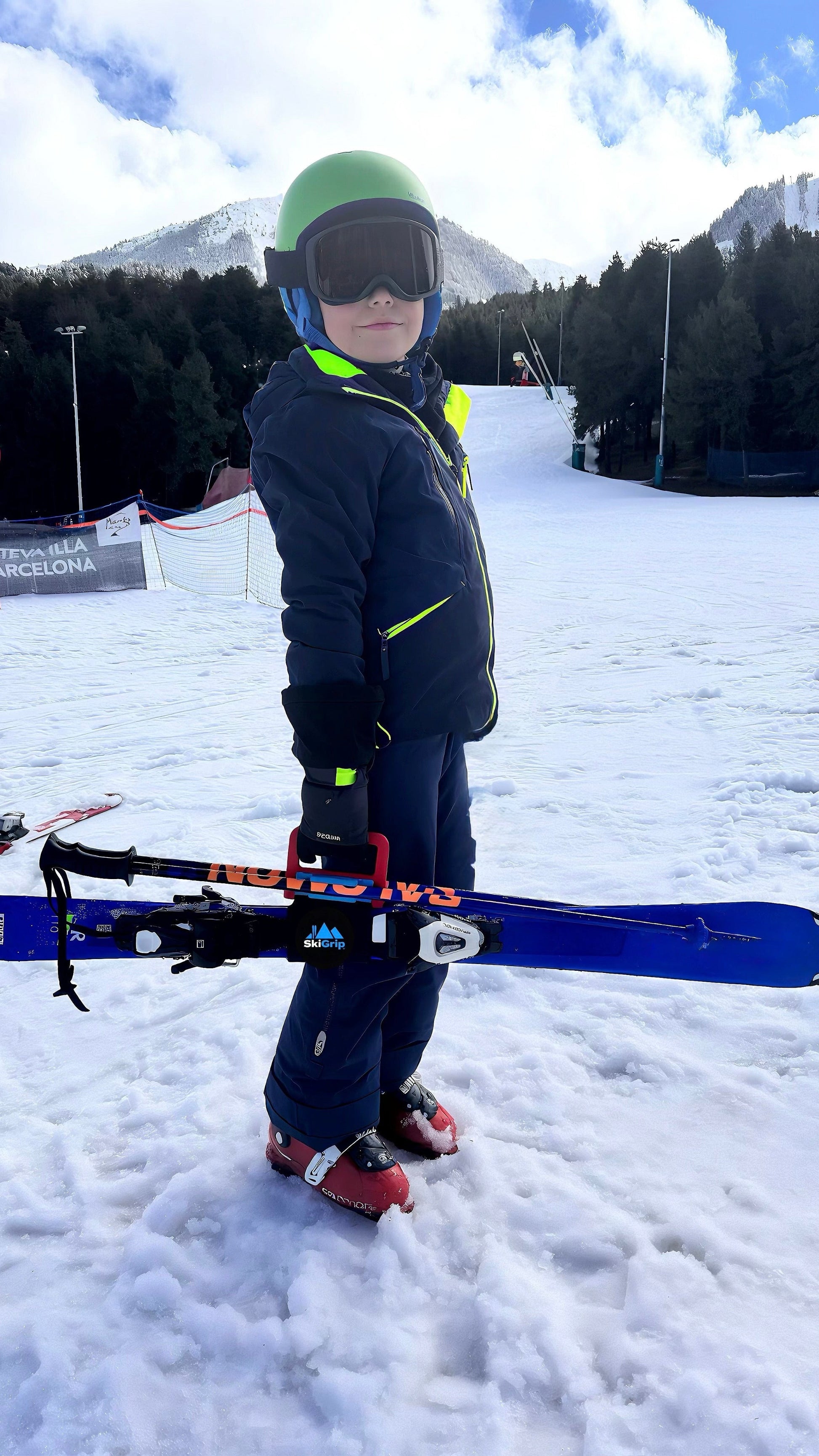 Das Gehen auf Schnee oder Eis, das Hinauf- oder Hinabsteigen von Treppen mit vollen Händen kann eine echte Gefahr darstellen. Außerdem kann es jedes Mal, wenn Sie Ihre Skier auf die Schulter nehmen, zu Schnitten und Kratzern an Ihrer Jacke oder Ihren Handschuhen durch die scharfen Kanten kommen. Vermeiden Sie Unfälle mit SkiGrip.